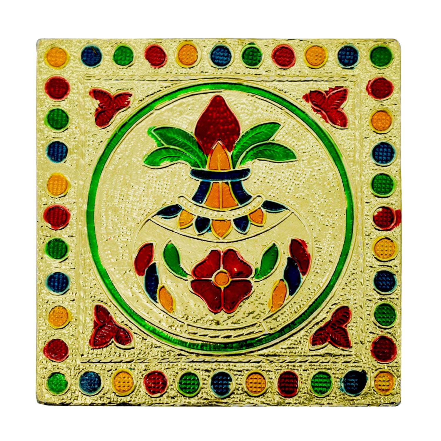 xWe brings to you Stylish and extravagant looking rectangle patla/ stand for Royal Weddings & Pujas. A very beautiful and unique style of minakari patla for increasing the beauty of your home. Made of wood the minakari design work gives it a different look. It can be used as a corner piece or to place god idols or to sit while performing Hindu pooja. Easily eye catching and admirable by everyone. Each piece is handcrafted and there may be a variation in colour and design
